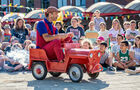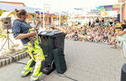 In a very disarming way, Peter manages to incorporate the theme of waste, sorting and recycling into a hilarious street theatre act, also suitable for the very youngest among us.