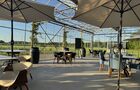 Outside on the deck are four benches where up to 20 people can sit under parasols. My rental season runs from April to October.