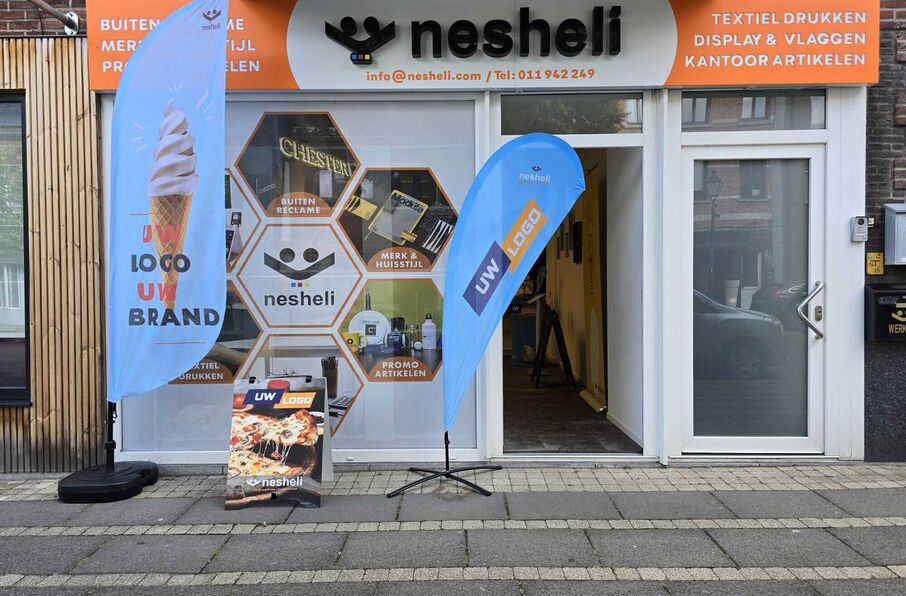 Welcome to Nesheli – your partner for promotion, signage, and printing. We help brands and SMEs throughout Belgium stand out with personalized products and powerful visual communication. Choose from over 5,000 promotional items and business gifts: pens, bags, mugs, USB drives, notebooks, eco-gadgets, and much more. We also provide professional signage solutions such as billboards, banners, window film, shop window and vehicle graphics, roll-ups, and display systems.