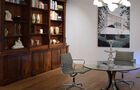 The gallery consists of a large rectangular space, a staircase and a cozy lounge bar with an authentic counter and fireplace.