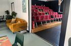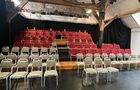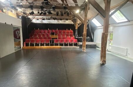 We feature a theatre hall with a grandstand, a theatre foyer with a bar, a dressing room, and a private side garden located next to the hall. The hall is equipped as standard with a television, theatre technology and lighting, a projector with screen, a black box option, a flip chart, a piano, and Wi-Fi, all included in the hall rental.