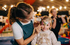With our mobile flower cart, we travel through streets and events, leaving a trail of painted faces and arms. Our enthusiastic painter, colorful cart, and cheerful French music are guaranteed to bring a smile to your guests' faces. We easily adapt our designs to the theme of your event and can even incorporate logos into our creations.